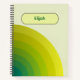 Stay organized in style with this modern spiral notebook for work. Its cover features a refreshing gradient of green tones, arranged in smooth, semi-circular layers that radiate a sense of calm and balance. The soft background paired with the bold geometric arcs gives it a clean yet creative look—perfect for both professional and personal settings. The name plate at the top adds a touch of personalization, making it easy to identify as yours. With its sleek design and practical spiral binding, this notebook is not only functional but also an inspiring companion for meetings, brainstorming sessions, or daily planning.