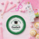These modern green and white custom graduation party plates feature classy typography of your university or college name for the class of 2025. Customize with your graduating year next to the chic handwritten script and black grad cap for great personalized congratulations graduate party decor.