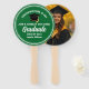 This modern green and white custom graduation photo hand fan features classy typography of your high school or college name for the class of 2025. Customize with your graduating year under the chic handwritten script and black grad cap for great personalized graduate decor.
