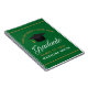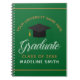 These classic green and gold custom college or high school graduation notebook party favor feature classy white typography under a grad cap for the class of 2025. Customize with your graduating year under the chic calligraphy. A perfect keepsake gift for a graduate to plan their future plans for grad school or university.