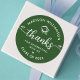 Announce to the world that your favorite grad has reached their milestone whenever you use this stunningly festive, modern, girly, personalized thank you sticker. A fun, playful visual of white script handwriting and cute, playful hearts and cap icon, along with her name and class year, overlay a hunter green background. Personalize the custom text with your graduate’s name and class year. Choose from a round or square shape, in 2 sizes. Matching and coordinating invites, thank you cards, cap toppers, fans, napkins, plates, banners, yard signs, and other graduation goodies are also available in this trendy and stylish collection. Guaranteed to add stylish fun to their special occasion!