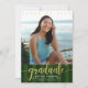 Green graduation photo gold glitter script modern invitation