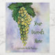Watercolor painting shows a cluster of green grapes used to create white wine.