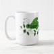 A cool design featuring a sleek green grasshopper among green leaves and vines. A nature inspired coffee mug.