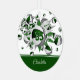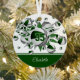 This cool girl's basketball ornament features an "explosion" of varied size basketballs that have alternating green, gray and white panels, and gray and green star shapes, upon which you can personalize her jersey number - the green star has a tiny pattern of white polka dots - customize the athlete's name on the front & commemorative year on the back on a green color strip at the bottom edge of the ornament - katz_d_zynes