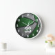 This team colors basketball wall clock is suitable for a boy or a girl and features a basketball with alternating green and gray recolored panels and clock face numerals - personalize with player name in an "autograph" style font overlying the athlete's jersey number - by katz_d_zynes