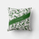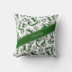 This cute volleyball team colors throw pillow for girls features a pattern of varied size stylized green, gray and white volleyballs turned every which way overlying a volleyball net detail graphic - the volleyballs' green and gray panels are blended with an artsy, girly floral pattern - personalize her name in a sophisticated handwritten font on a bold, angled, full width green color strip - background and name strip colors are customizable - by katz_d_zynes