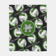 This volleyball themed fleece blanket features a mirrored pattern of volleyballs with green, gray and white panels and the sporty font text "I love volleyball" in gray that stretches between the angled rows of volleyballs - athlete name and monogram can be personalized on the large overlying circle pendant - background is customizable black - easily delete the "I love volleyball" text lines, if desired, or replace the monogram with the player's varsity letter or jersey number - by katz_d_zynes