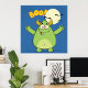 A cartoon looking green halloween monster. This design looks really effective on these Poster