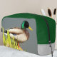 Zippered dopp kit toiletry bag that features the photo image of a green-headed, male Mallard duck along with a solid, green top and light gray colored sides. Perfect accessory bag for your toiletries for on-the-go travel!