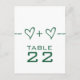 Cute and whimsical Heart Equation Wedding Table Number Postcard in dark green featuring a fun math equation "joining" two hearts/people. This nerdy design is a charming choice for a math loving couple or any couple wanting something simple but with a hint of whimsy. Easy to customize, simply add the appropriate table number(s) in the space provided. Click "Customize It" to find more personalization options.