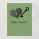Thank your wedding guests with the elegance of this whimsical Heart Lock and Key Table Number Postcard in light green. This unique table postcard features a metal look heart-shaped lock with a matching key on a digital art rendered wood panel background. This lovely design would be the perfect choice for a sophisticated wedding. Easy to customize, simply add the table number in the text field provided. Click on the "Customize It" button to find additional personalization options.