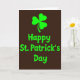 This card features a large shamrock centered near the top, with three heart-shaped leaves that hint at a sweet, friendly bond 💚. The shamrock and its slender stem are rendered in a bright, glowing green that feels like it’s lit from within. Beneath it, the words “Happy St. Patrick’s Day” sit in the middle of the card in a roomy, rounded sans‑serif style. The text matches the shamrock in the same green, tying the message and symbol together like a pair that belongs side by side ☘️. All of it stands out against a deep chocolate-brown background that gives the green extra punch and a cozy, earthy contrast. The layout stays simple and focused, leaving plenty of open space so your eyes move naturally from the shamrock down to the greeting. The final look is a dark brown field with a glowing green shamrock above centered green lettering.