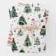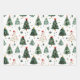 Here's an fun and bright three design set of Christmas wrapping paper sheets with two designs that use trees as the predominant design. Colors used are predominantly green and white, with touches of gold and red. Along with the tree images, one paper contrasts nicely by using red, green, and white stripes.