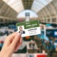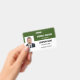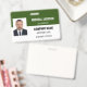 This is a sample professional ID badge template with a horizontal layout and a green-and-white color scheme. It includes customizable sections for a company logo or name, employee photo, full name, job title, department, and unique ID number. This layout is ideal for office environments or events that require clear identification.