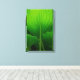 The natural Green Hosta Leaves Wrapped Canvas Print features a close up abstract nature photograph of a green hosta leaf with curved lines and a water droplet.
