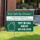 This modern green and white For Sale by Owner yard sign is custom made with your name and phone number. Advertise your house to home buyers with this personalized sign for a home owner or real estate agent.