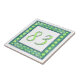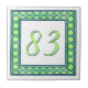 A hand drawn green checkered frame around a light green house number on a white background with dark blue outlines.