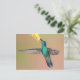 Green Hummingbird Flying to a Yellow Flower Postcard