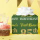 This wrapping paper design features a message like "First-Name’s 85th BIRTHDAY!", with the "85th" having a faux/imitation gold-like color appearance. The name can be personalized, and the background is colored green. It could perhaps be used when wrapping gifts being given for somebody’s eighty fifth birthday. [~Z0000179]