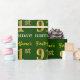 This wrapping paper design features a message like "First-Name’s 91st BIRTHDAY!", with the "91st" having a faux/imitation gold-like color appearance. The name can be customized, and the background is colored green. It could perhaps be used when wrapping gifts being given for somebody’s ninety first birthday. [~Z0000179]
