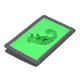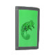 with original design of watercolour and ink illustration by artist Sacha Grossel of brightly coloured green, patterned chameleon against a bright, apple green background. This quirky illustration of this reptile is cute and funny and for lizard and animal lovers everywhere.