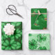 GREEN IRISH SHAMROCKS PIPES TOP HATS WRAPPING PAPER SHEETS