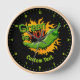 Green pepper with environmental message over circle of flame. Custom background color. Custom text.