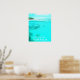 Travel poster print of Green Island scenery from the Great Barrier Reef in Queensland Australia in an arty modern colorful aquamarine ocean style of travel art print.