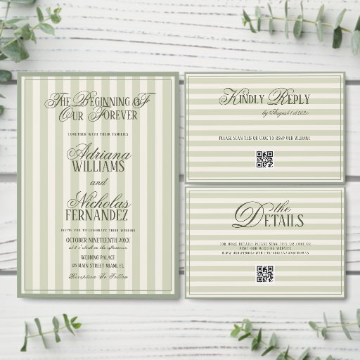 Green Ivory Striped Old Money Calligraphy Wedding Save The Date