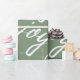 Add a touch of elegance to your gifts with this green Joy script Christmas wrapping paper. The design features a seamless pattern of the word “joy” in flowing white script, accented with scattered gold snowflakes on a muted sage green background. Perfect for wrapping presents in style, this festive yet sophisticated design works beautifully for holiday gifting, winter weddings, or seasonal celebrations.