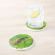 I'm not sure how much moisture these will soak up, haven't had a chance to try them out, but they look good and I like the cork backing. The printing is fine ~ and really looks cool with an artisan's hand made "Hurricane Martini" glass sitting on top of my painting (on the coaster) in my studio.