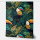 Watercolor colorful Toucan Bird in the tropical green jungle leaves wallpaper.