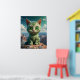 “Say hello to our cute green kitten, exploring a faraway planet with its big, round eyes! Sitting on a distant world with its fluffy green fur, this little space explorer is ready to make your room a magical place. Perfect for kids who dream of adventures in outer space, this poster will add a touch of fun and wonder to their bedroom!”