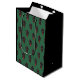 This festive yet fearsome gift bag features a striking pattern of Krampus faces against deep Christmasy green, perfect for adding a touch of dark whimsy to your holiday gift. Each Krampus face is intricately detailed, with menacing eyes, curling horns, and a lolling tongue. This gift bag is ideal for those who appreciate the more creepy and spooky side of the holiday season and will be enjoyed by goths and horror fans.