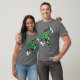 My 11 yo wore adult XL (5’7” 165#). The 8yo is small framed. She wore adult small and tied it in the back. Grandma wore adult large with long sleeve shirt underneath. Tall girl adult medium. Dark haired male adult large. Good quality dark Heather gray, Gildan brand shirt. -it was next up from basic choice and cost about $20 per shirt. Not too thick or thin. Washed and dried well, no major shrinkage. Not see-through. Can wear a bra under it fine. Screen print is just as shown and well done, front and back.