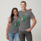 My 11 yo wore adult XL (5’7” 165#). The 8yo is small framed. She wore adult small and tied it in the back. Grandma wore adult large with long sleeve shirt underneath. Tall girl adult medium. Dark haired male adult large. Good quality dark Heather gray, Gildan brand shirt. -it was next up from basic choice and cost about $20 per shirt. Not too thick or thin. Washed and dried well, no major shrinkage. Not see-through. Can wear a bra under it fine. Screen print is just as shown and well done, front and back.