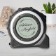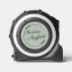 A fresh tape measure featuring a custom name and business name framed by delicate green laurel leaf accents on a soft sage green background. The botanical, nature-inspired design gives it a modern, artisan feel. A thoughtful gift for interior designers, home stagers, landscapers, or any creative professional. All text is fully customizable.