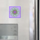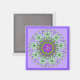 Dhades of green, purple and lavender in flower pattern with spirals and yantras form a mandala on a square magnet. Really pops!