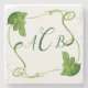 Green Leaf Art Custom Monogram Stone Coaster