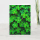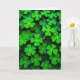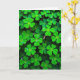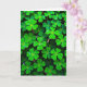 This design shows a close-up sea of three-lobed, heart-shaped leaves packed tightly together like a soft green quilt, with pairs of leaflets leaning toward each other as if sharing a quiet secret between friends 💚. Gentle light falls across the foliage, shifting from pale lime near the front to deeper emerald tones where the leaves overlap and tuck into shadow. The setting feels like a sheltered patch of ground after a light morning sprinkle, where everything looks fresh and just-woken. Tiny round water droplets scatter over the leaf surfaces, clinging along edges and settling into the shallow veins like little beads. Some droplets catch the light and throw back bright pinpoints, like small mirrors that make the greens look even richer. The greeting “Happy St. Patrick’s Day” sits near the top in a light gold-green color, with a smaller line of text near the bottom in white, leaving the leaves to fill most of the space ☘️. The entire frame is covered edge to edge by overlapping shamrock-like leaves, each one dotted with clear droplets that sparkle against the velvety texture.