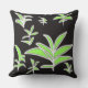 Green Leaf On Black Outdoor Pillow