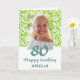 Green Leaf Pattern Botanical 80th Birthday Photo Card