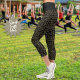 This nature style design features a green and beige branch and leaf pattern on a black background with black waist. A fun fashion for yoga, gym workouts, biking and other activewear activities. Nice for lounging too. It can also make a great gift idea for the active people in your life.