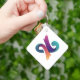 A versatile metal square keychain showcasing a unique design featuring green leaf white lines on one side and a graphic element hand-drawn on the other. Perfect for those who appreciate artistic and functional accessories.
