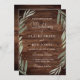 Green Leaf Wreath Rustic Wood Wedding Invitation
