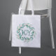 Green Leafs Christmas Wreath Text Joy Template Tote Bag