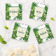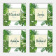 This coaster set features green tropical foliage and small white flowers on a white background. Personalize each coaster by adding your names and initials to the central frame.