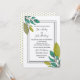 Plain white envelopes are included with paper invitations and will come to fit the invitation size you select. If you don’t need the envelopes, you may choose to not receive them by selecting the dropdown below "Envelopes" and choosing "None." If you’d like to have a design on your envelopes, you can browse all of these available envelopes to find the design that complements your Green Leaves Invitation.