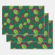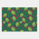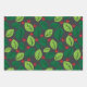 Green Leaves, Red Berries, Pattern Of Leaves Wrapping Paper Sheets
